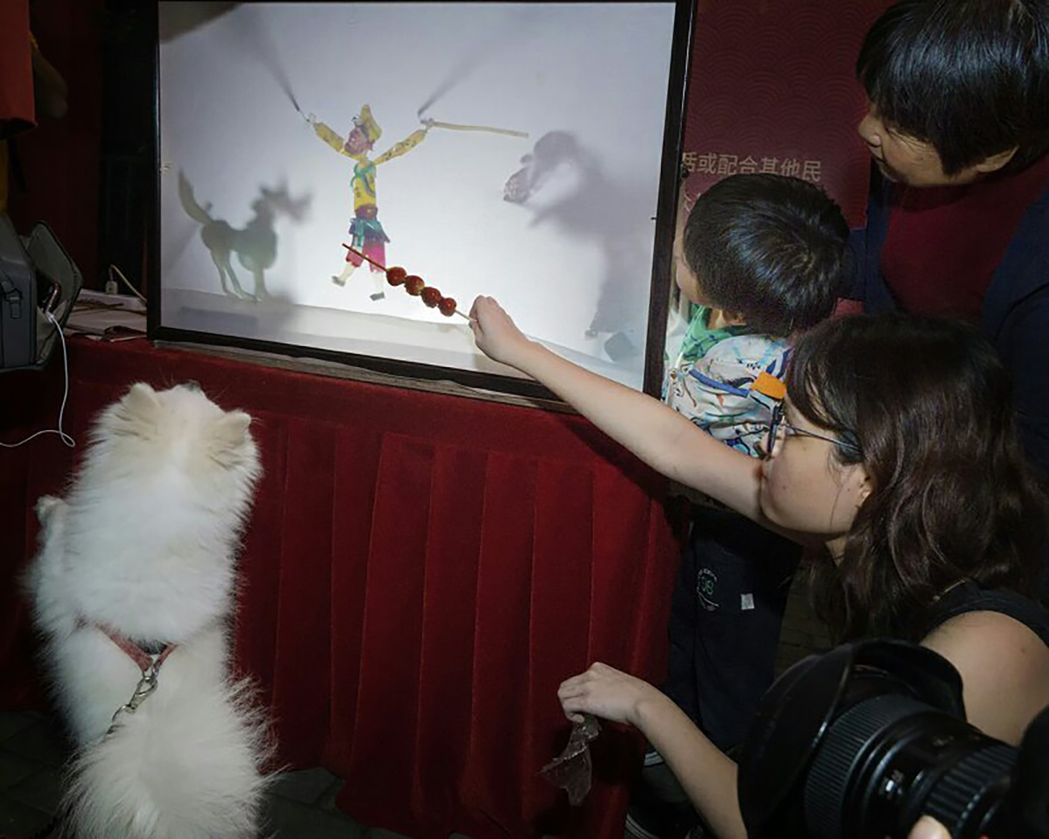 2019年2月7日珠海吉大白沙河相思树下街区。一盏灯,一块幕布,一个讲故事的人,将围观的小朋友和宠物深深吸引,各个玩得不亦乐乎,现场笑声不断…… 梦幻摄影 摄