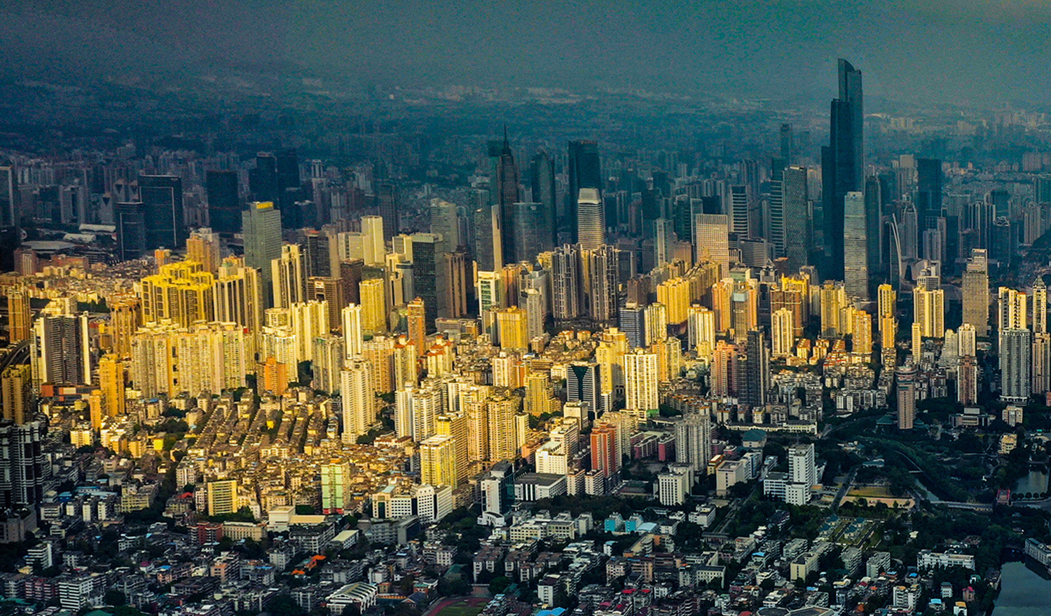 8日下午,广州上空云层透出一缕阳光。马卡 摄