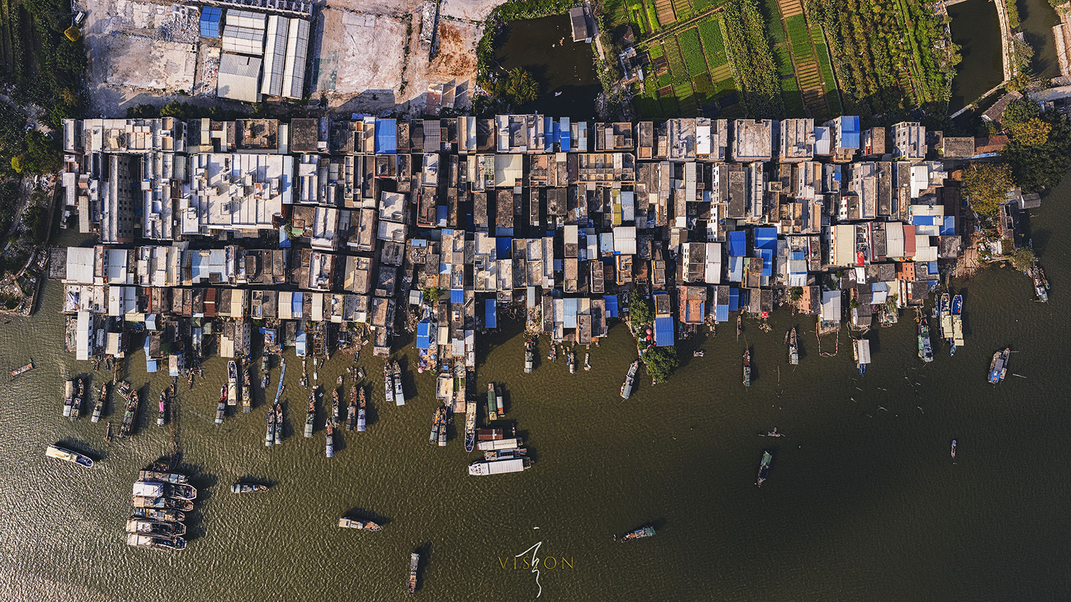 2月6日,广州,新洲渔村迎来堤岸整治吊脚楼前的一个新年。陈国亨 摄