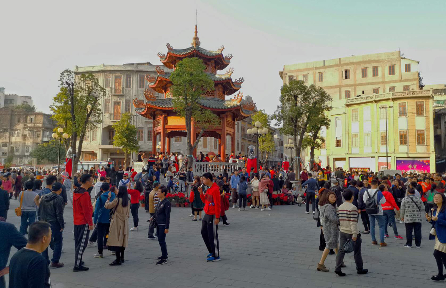 正月初三,中山纪念亭,位于汕头开埠区核心小公园,经过这二年的维护修整,逐步重现一百多年前的历史风貌,潮汕商埠中西合壁的精美骑楼建筑,浓厚的民国风情,吸引人们到此怀旧游玩。林展雄 摄