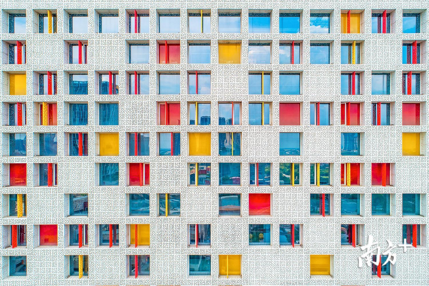 7月23日,佛山乐从新城的一座建筑物外墙,色彩斑斓。梁文生 摄