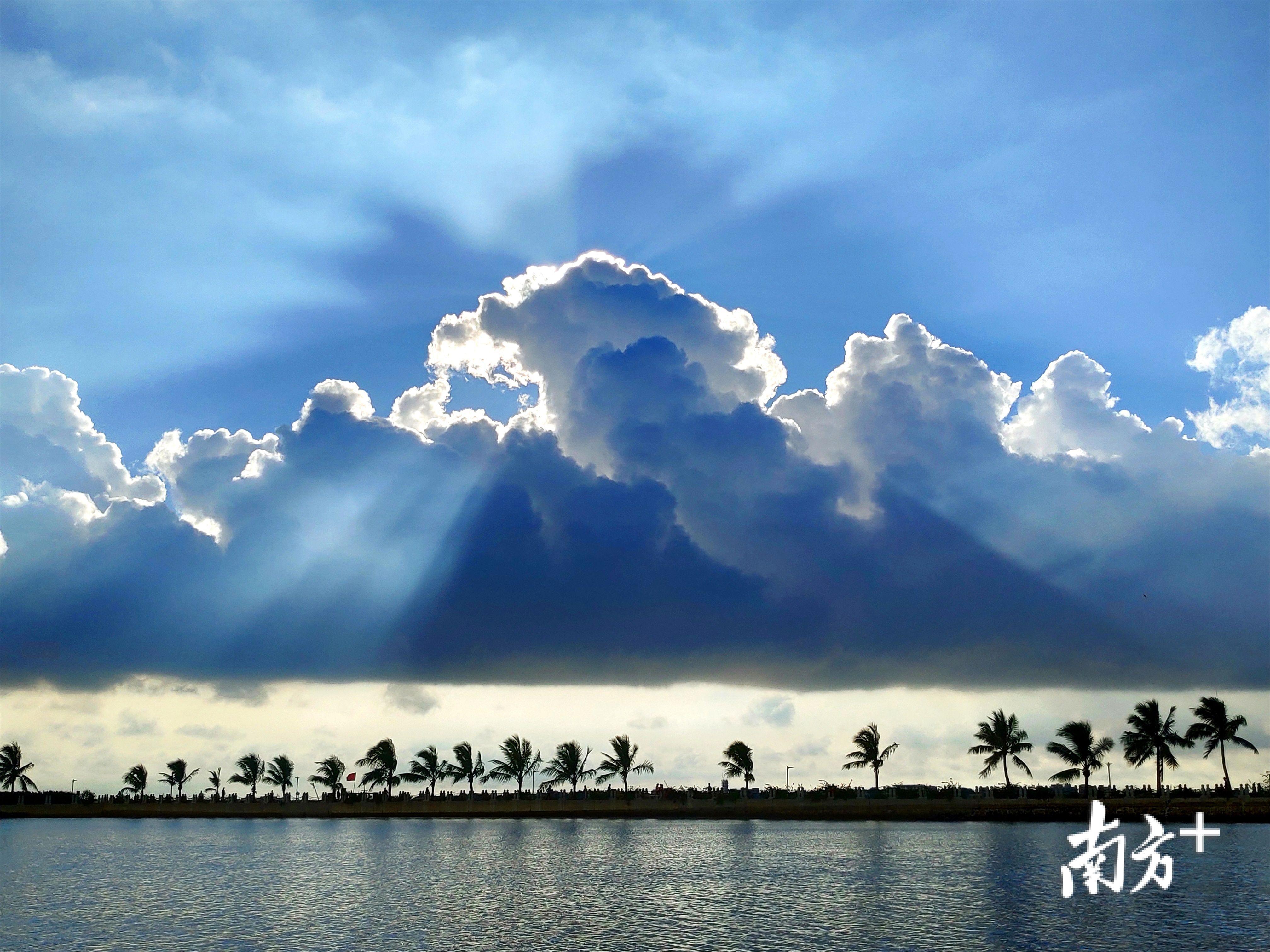 7月26日早晨,湛江市霞山月亮湖东方出现如梦如幻的醉美晨曦,阳光透过云层射落湖面,如同水墨画一般,让人流连忘返。陈永锋 摄