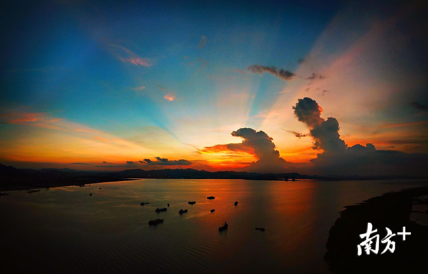 7月27日,珠海市香洲区,远处的地平线上,太阳将要落下。羊肉丸子 摄