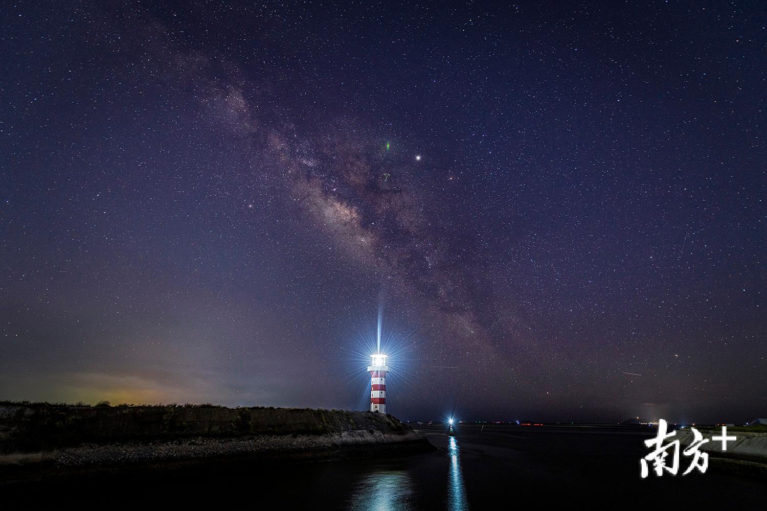 7月26日,茂名市博贺镇,漫天的星星银河在灯塔的指引下缓缓升起。李康华 摄