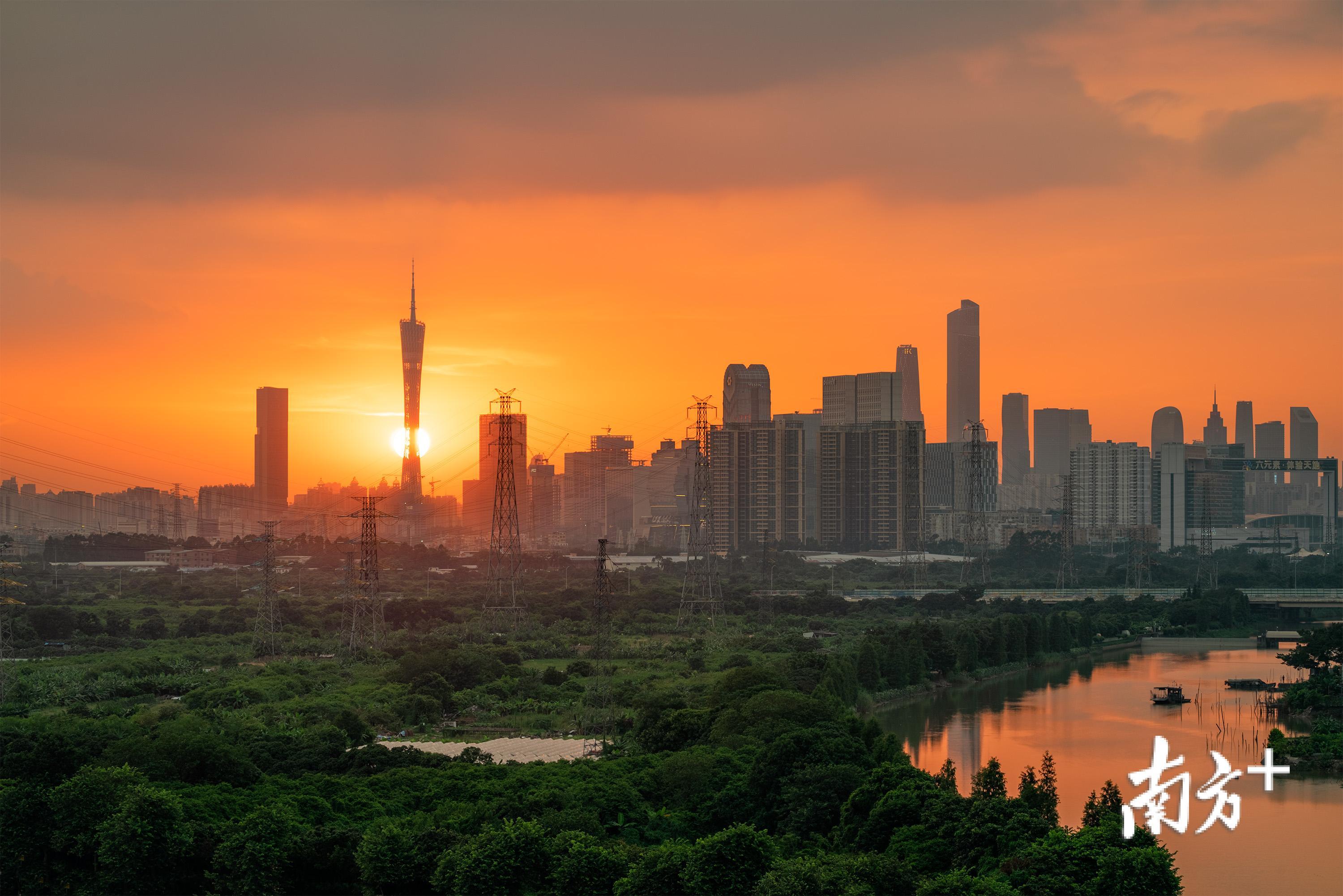 7月26日傍晚,在大学城方向看日落,恰巧太阳穿过广州塔。杜华林 摄