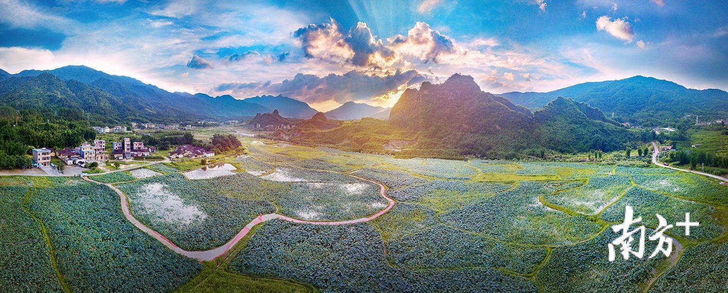 7月24日,广州从化吕田镇,斜阳西落,荷风阵阵惹人醉。卢文 摄