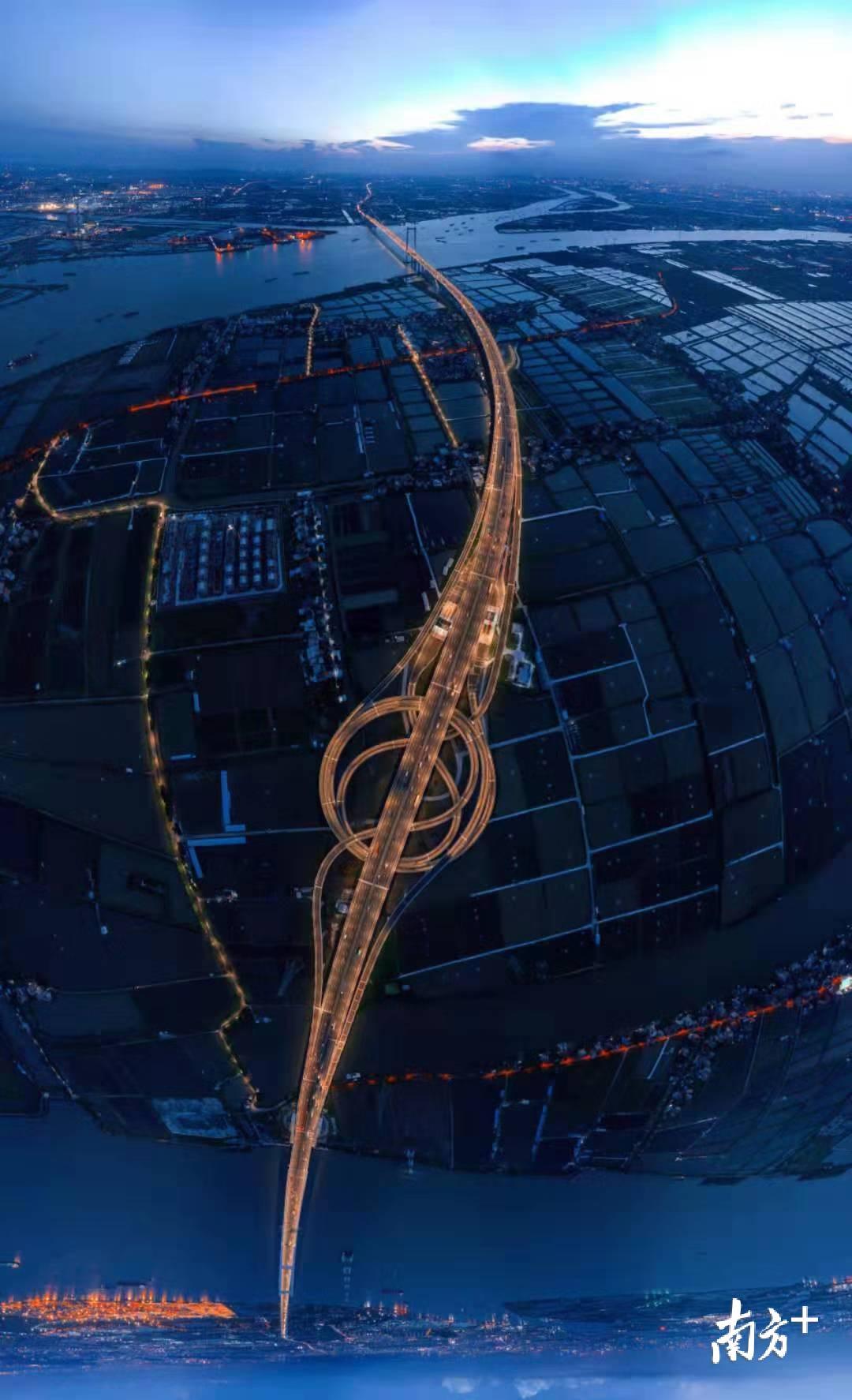 7月23日,全景接片下的南沙大桥,呈现出整个珠江口及坭州水道的全景蓝调画面。傅昆 摄