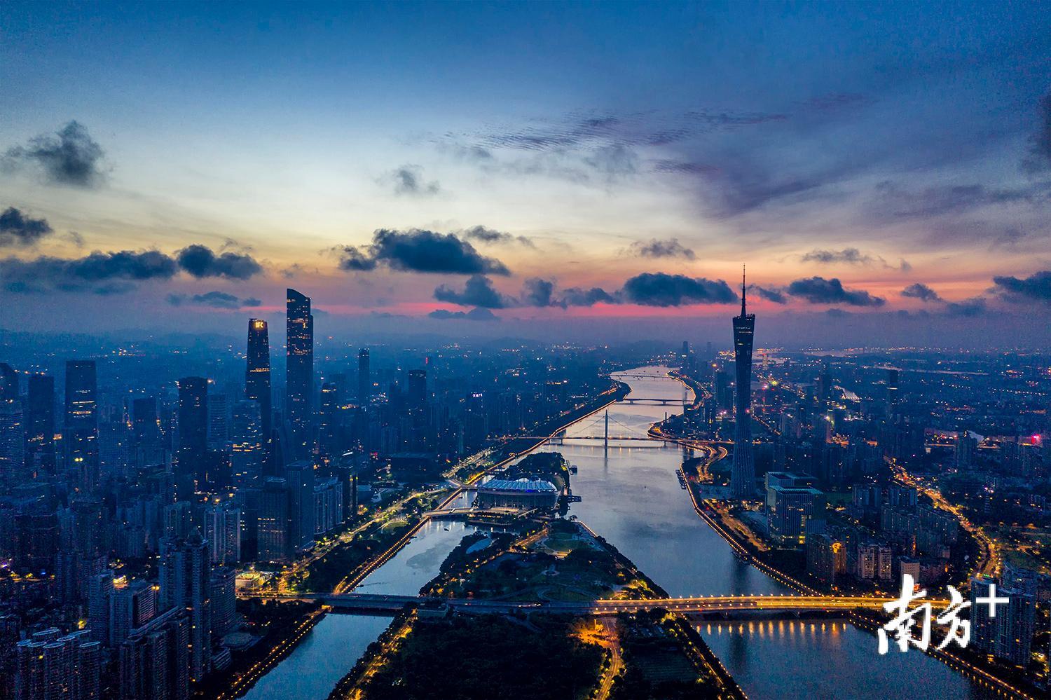 7月27日清晨,日出之前的广州,还笼罩在一片蓝调之中,街灯尚未熄灭,天边已泛出红霞。刘晶 摄