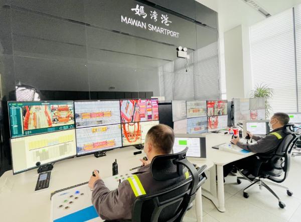 深圳妈湾港,岸桥司机坐在办公室里远程操作。