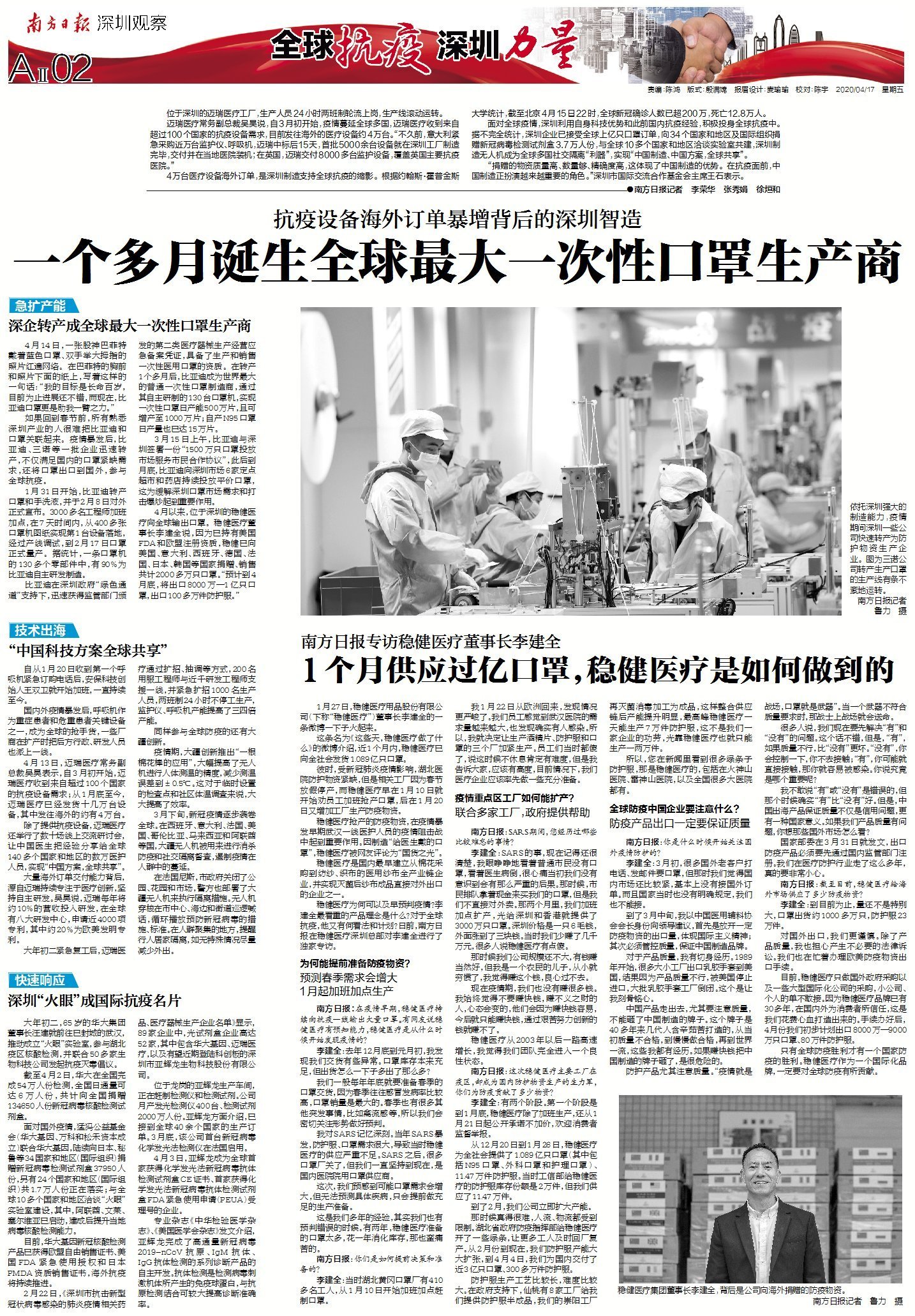 南方日报:这次稳健医疗主要工厂在疫区,却成为国内防护物资生产的生力军,你们为防疫贡献了多少物资?