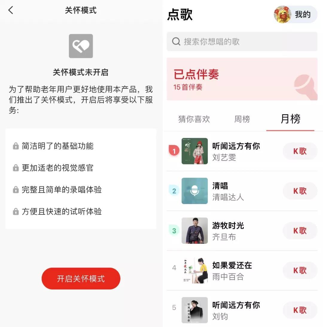 全民K歌上线关怀模式,优化了选歌、K歌、录歌、发布作品等流程,还简化一些基础功能的使用,方便老年人使用。