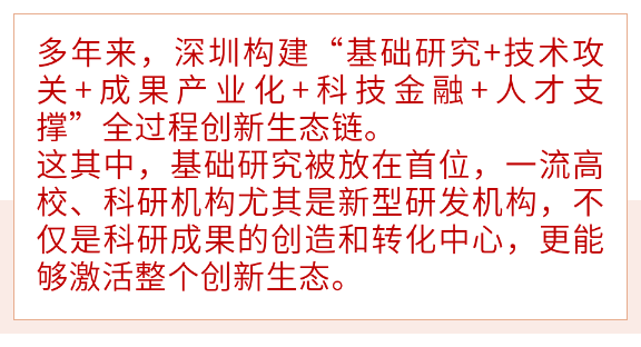“在南中国,煲一锅创新驱动增长的浓汤”,著名经济学家周其仁曾以“浓汤”谈要素互动:让人才、公司、大学、法律服务、金融力量等创新要素,在大湾区的沃土持续性地充分互动。在深圳高新区,一批高水平科研中心、新型研发机构正是这锅“浓汤”中的关键成分,汇聚战略科技力量,提升源头创新能力,调动各种人才积极互动、碰撞和挑战,激活产业创新生态。