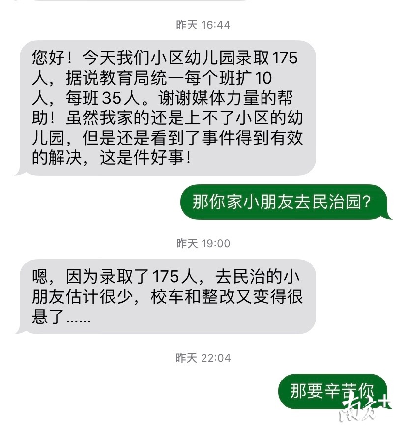 “谢谢媒体力量的帮助!虽然我家的还是上不了小区的幼儿园,但是还是看到了事情得到有效的解决,还是见好事!”杨女士介绍。