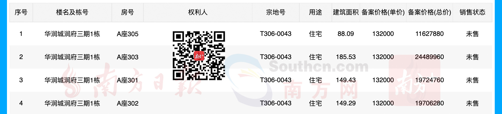 同时备案的,还有华润城三期4套精装样板房,为现房,面积分别为88㎡、150㎡、190㎡,均价13.2万/㎡,总价1162-2449万/套。