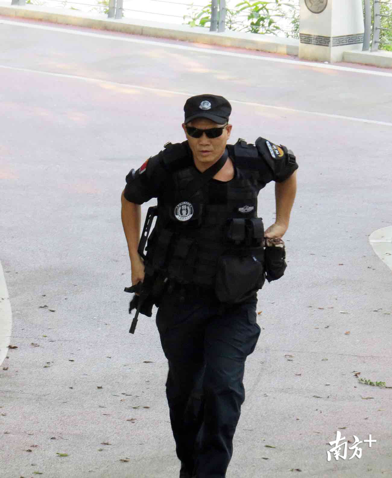 在记者面前,他比划着如何应急处突,声音洪亮,动作生动,完全进入了授课的角色。身材健壮、脸部黝黑、短平头,且带着谦和的微笑,他是万江公安分局巡警大队民警李业清,同时担任东莞警队警务实战技能兼职教官。近日,记者对李业清进行采访。