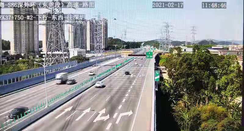 2、沿江高速东莞段南行K57因深圳外环高速车流大影响,缓慢500米。