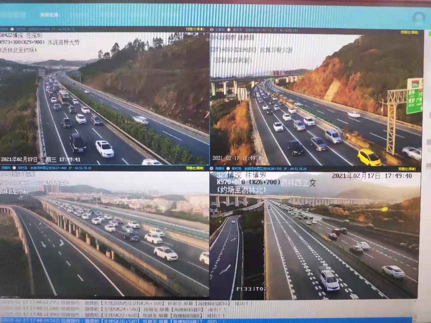 (1)往深圳方向沥林西互通至银瓶山隧道路段车辆缓慢通行3公里。(2)往深圳方向谢岗服务区至沥林西互通路段车辆缓慢通行3公里;(3)往博罗方向车流正常。