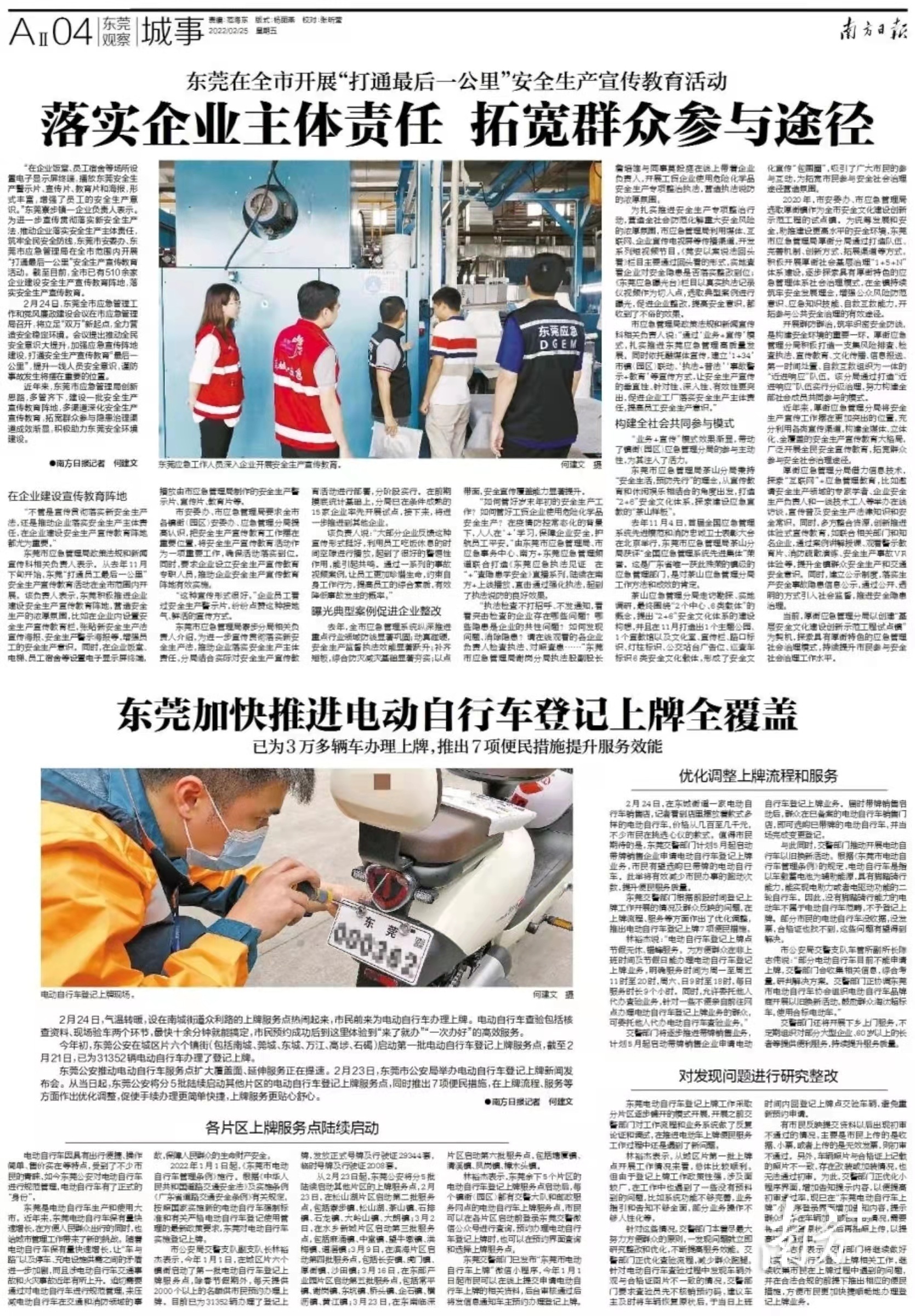 市应急管理局政策法规和新闻宣传科相关负责人说:“通过‘业务+宣传’模式,扎实推进东莞应急管理高质量发展。同时依托融媒体宣传,建立‘1+34’市镇(园区)联动、‘执法+普法’‘事故警示+教育’等宣传方式,让安全生产宣传的垂直性、针对性、深入性、有效性更突出,促进企业工厂落实安全生产主体责任,提高员工安全生产意识。”