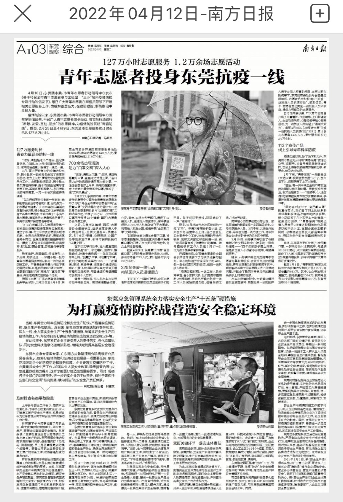 林有强是东莞专职安全员落实巡查覆盖工作的剪影,亦是东莞应急管理系统护航城市发展的写照。当前,东莞面临安全生产与疫情防控风险容易叠加,生产安全事故易发多发,防事故、保安全任务艰巨繁重。东莞应急管理系统正统筹抓好安全生产和疫情防控工作,积极发挥应急管理部门牵头抓总的职能作用,注重协调联动,层层推动落实部门监管责任和企业主体责任,抓实抓好各项安全生产工作措施,坚决防范遏制较大以上事故发生。