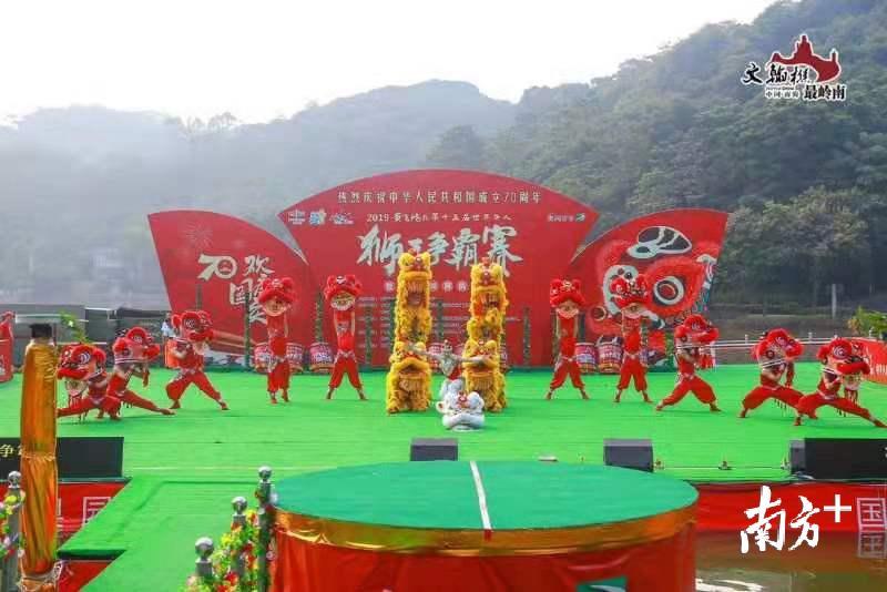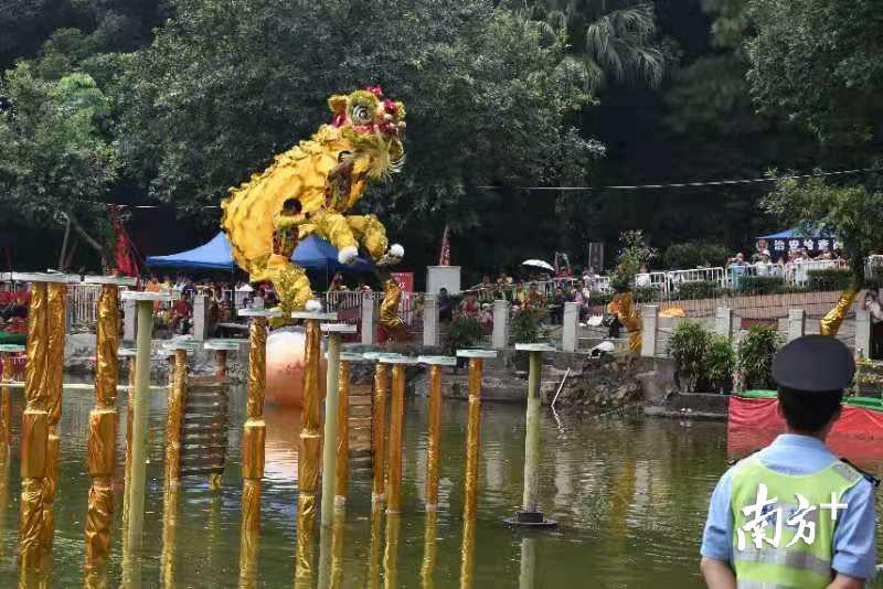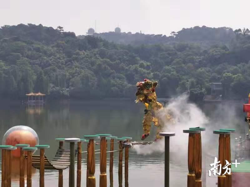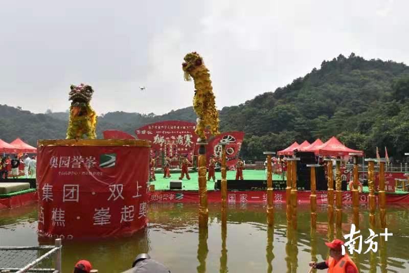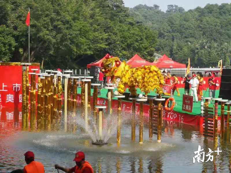 据了解,赛事已连续举办了十五届,每年国庆期间在西樵山天湖公园举行。今年,共吸引了来自泰国、印尼、马来西亚、中国香港等海内外华人华侨以及上海、江苏、湖北等21支内地舞龙舞狮顶尖队伍参加,争夺高桩南狮、舞龙、水上双狮、竞速及障碍赛五个项目的最高荣誉。