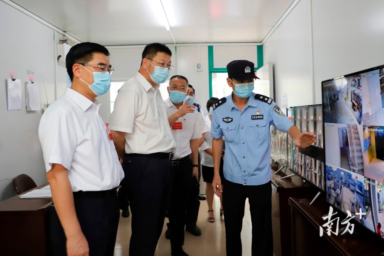 白涛一行首先来到石排镇集中隔离医学观察点,仔细查看了清洁区、视频监控室及周边环境,详细询问集中隔离医学观察点管控流程、防控人员配备、硬件配套设施、隔离观察人员生活安排及各项物资保障工作落实情况。