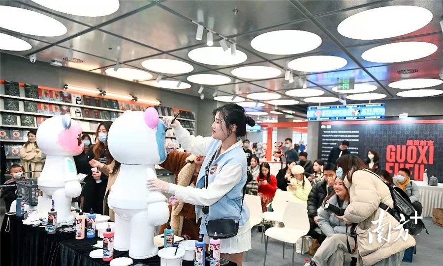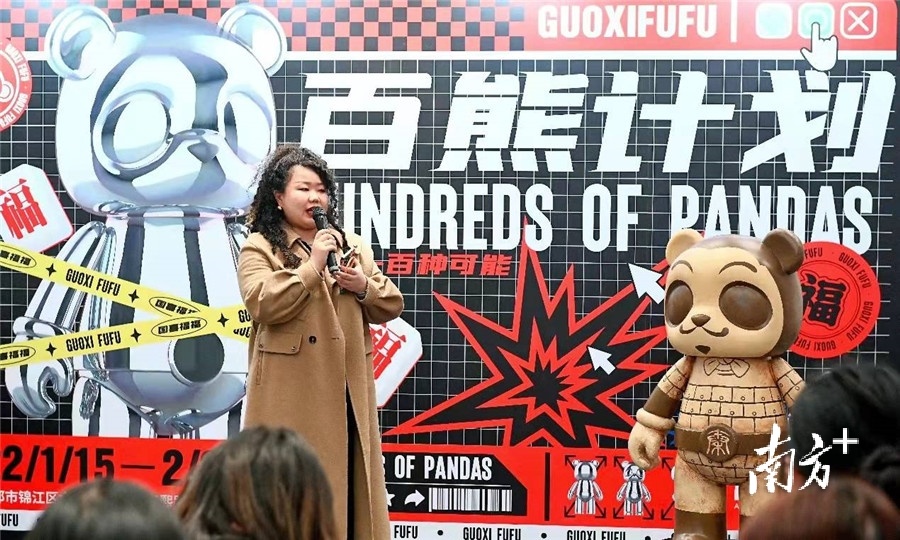 这是东莞本土国潮潮玩IP国喜福福的首次展出,100只熊猫IP旨在传承弘扬中华优秀传统文化,受到潮玩爱好者和年轻人的广泛关注。