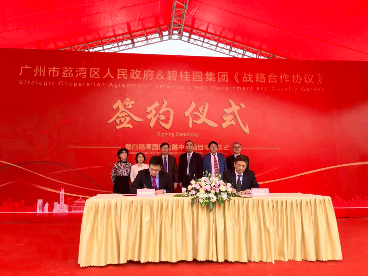 3月28日,广州市荔湾区政府与碧桂园集团荔湾区白鹅潭举行战略合作签约仪式。