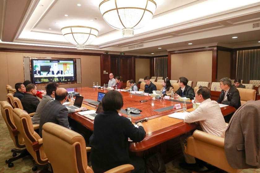 今年2月举行的“中美新型冠状病毒科研攻关专家组”第二次视频会议现场。资料图片