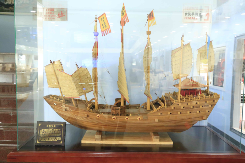 记者现场获悉,华夏保险”号新游船外观设计参照“辽宁号”航空母舰造型,总客位392人,游船全船灰白色涂装,船体大气硬朗。游船采用全回转电力推进模式,一楼设有“辽宁号”航母舰队模型沙盘展,大厅是专门订制的“郑和下西洋”海图地毯,三楼飞行甲板上搭载了大型仿真歼-15战斗机模型,舱内更放置了多艘古今中外著名战舰船模。