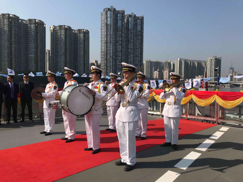 1月23日,由广东省航运集团旗下“蓝海豚”水上游品牌全新打造的全国首艘军事主题游船“华夏保险”号,在珠江首航。