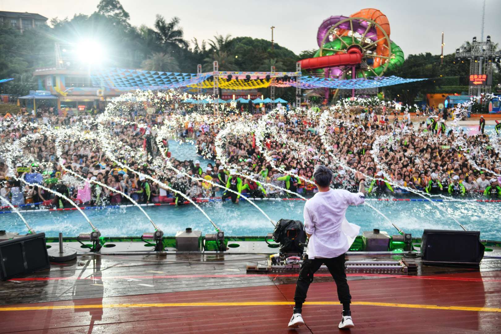 要玩就玩世界第一!刚凭全球第一台“摇滚巨轮”获得“杰出成就奖”的长隆水上乐园,首次连续两天举办开园活动,邀请了《偶像练习生》的乐华七子NEXT成员Justin(黄明昊)和丁泽仁担当“冲浪大使”,吸引数万游客聚集,开启全新摇滚玩水热浪。