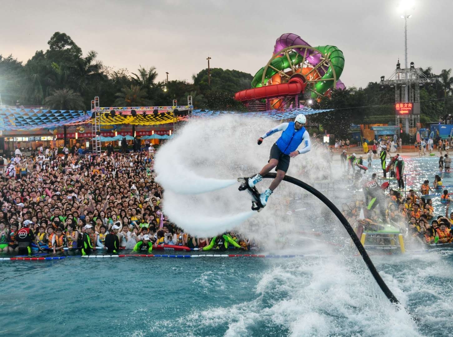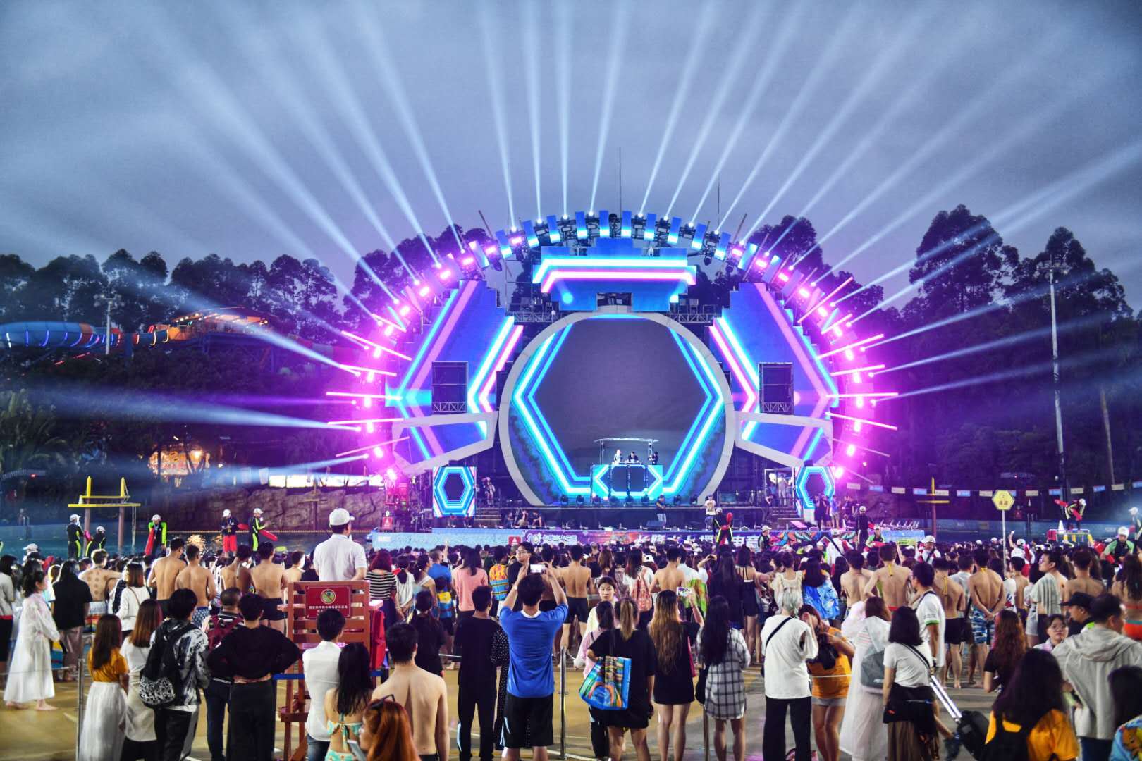 长隆水上乐园创新打造的“长隆水上电音节”,已经成为全球水上乐园标志性的潮牌,堪称世界上时间跨度最长、参与人数最多的全球首个水中电音节。据了解,2019年的“长隆水上电音节”对造浪池舞台进行舞美、灯光和音响系统的全面升级,并增加了多个LED大屏,让游客感受来自电音摇滚舞台的零距离玩水交流。