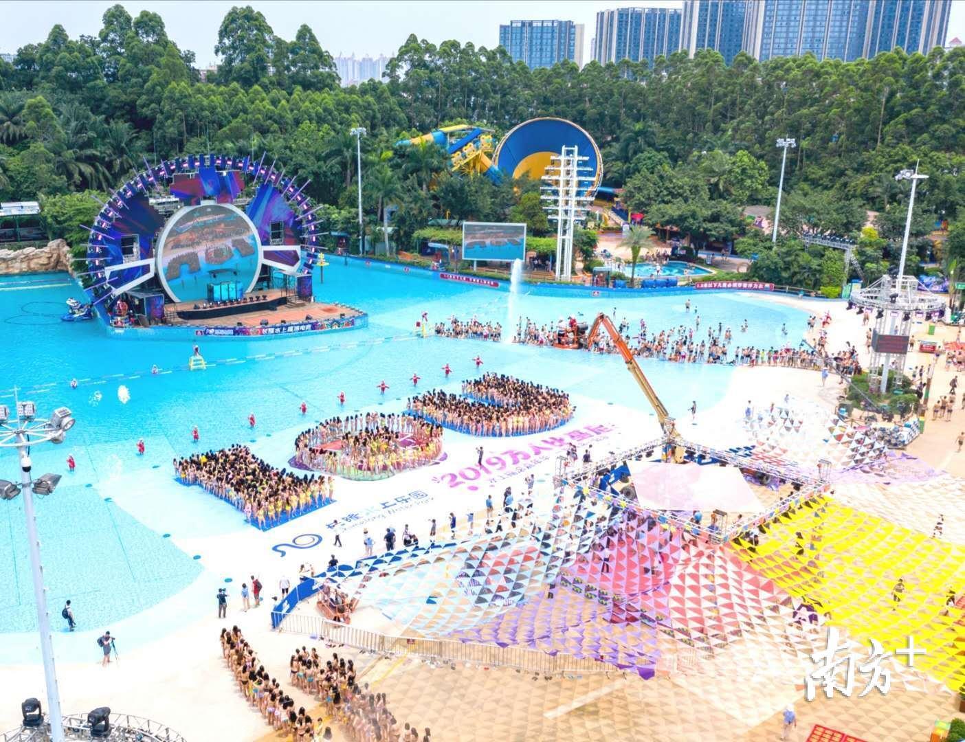 5月18日,数千名比基尼美女聚集在长隆水上乐园,摆出“I love U”造型, 让世界第一台自带动力系统的“摇滚巨轮”玩水设施以另一种方式“动”起来,掀起“520表白日”第一波浪潮。