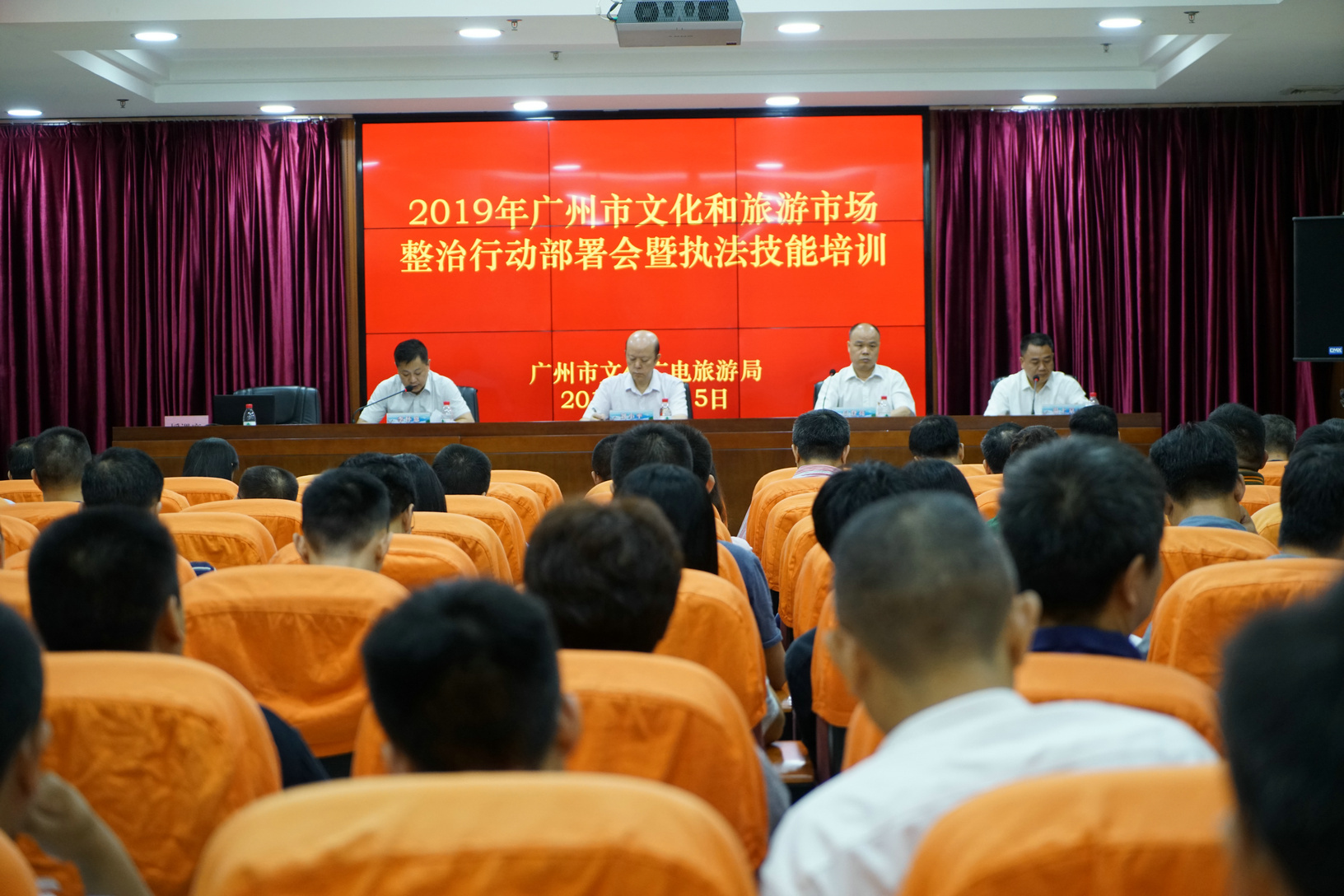 7月15日,广州市文化广电旅游局就文化和旅游市场整治行动进行动员部署,并举办执法技能培训班,这是广州市机构改革后文化市场执法监管部门首次公开亮相。市文广旅局文化市场综合执法监督部门、各区文化广电旅游体育局执法骨干80余人参加动员会及培训班。