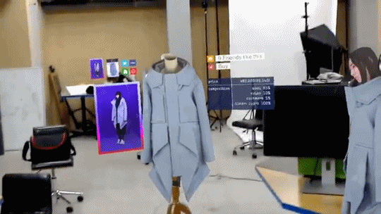 淘宝二次元的店门口被弹幕覆盖,还有可爱的淘公仔在搬运货物,店铺中央有一辆机器车,用眼睛盯着它可以和同行的另一位MR体验者开展一场MR的赛车游戏。在iFashion服饰店里,用眼神“打量”一下模特身上的衣服,淘宝红人杨文昊、淘宝主播肉丸就会出现,介绍产品,教你如何搭配。进来体验之前需要先打开手淘,扫码将本次购物体验绑定手淘账号,出来后MR购物的商品就可以直接在淘宝购物车里下单。