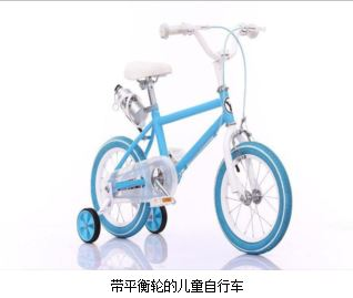 儿童自行车是指适合于4至8岁儿童骑行,最大鞍座高度为435mm至635mm,凭借作用于后轮的驱动机构骑行的自行车。有带或不带平衡轮的各种轮径、各种款式。儿童自行车不能用于公路骑行。