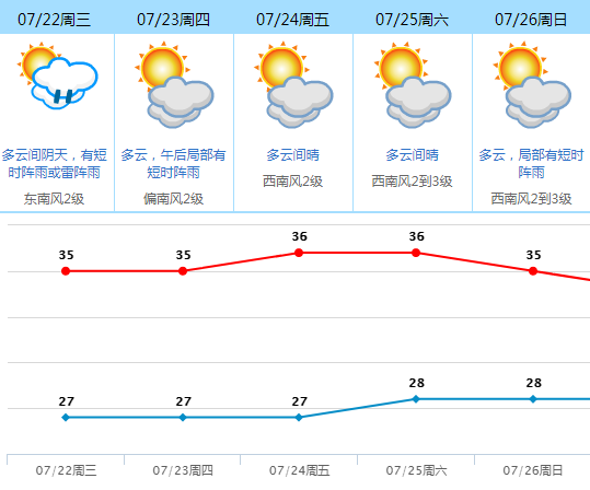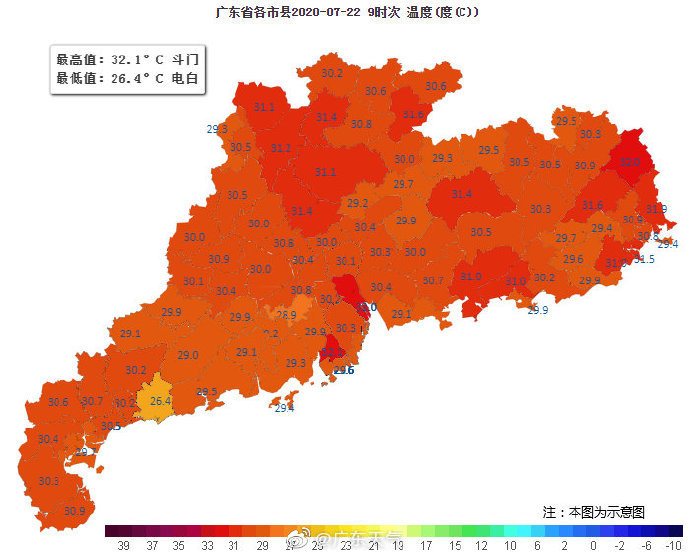预计22-25日,受副热带高压控制,广东高温炎热天气仍将持续,有大范围35℃~37℃高温,部分市县38℃~39℃;受低层的偏南气流影响,午后有分散的阵性雷雨,局地大雨或暴雨,雷雨时部分市县伴有8级左右短时大风。