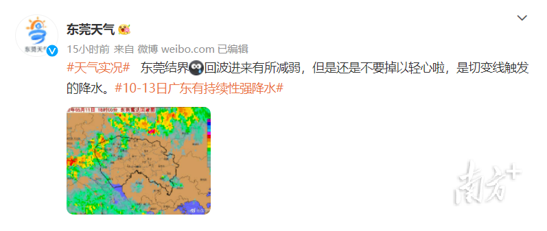 10日夜间至11日,东莞似乎有“结界”,雷雨云团绕路走,原本气象部门预测的强降水没踪影。