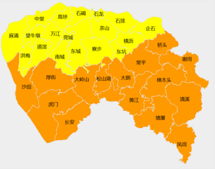 东莞市气象台于5月12日9时7分对部分镇街发布暴雨橙色预警信号。