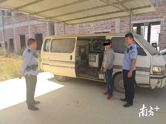 获悉情况后,新江派出所迅速组织警力前往处置。在新益村井头组溪背岭一民宅后院,民警发现了目标,一辆报废面包车,并在民宅内控制了嫌疑人何某华。经对报废面包车检查,民警在车内发现汽油200升,油桶、加油计价设备一批。