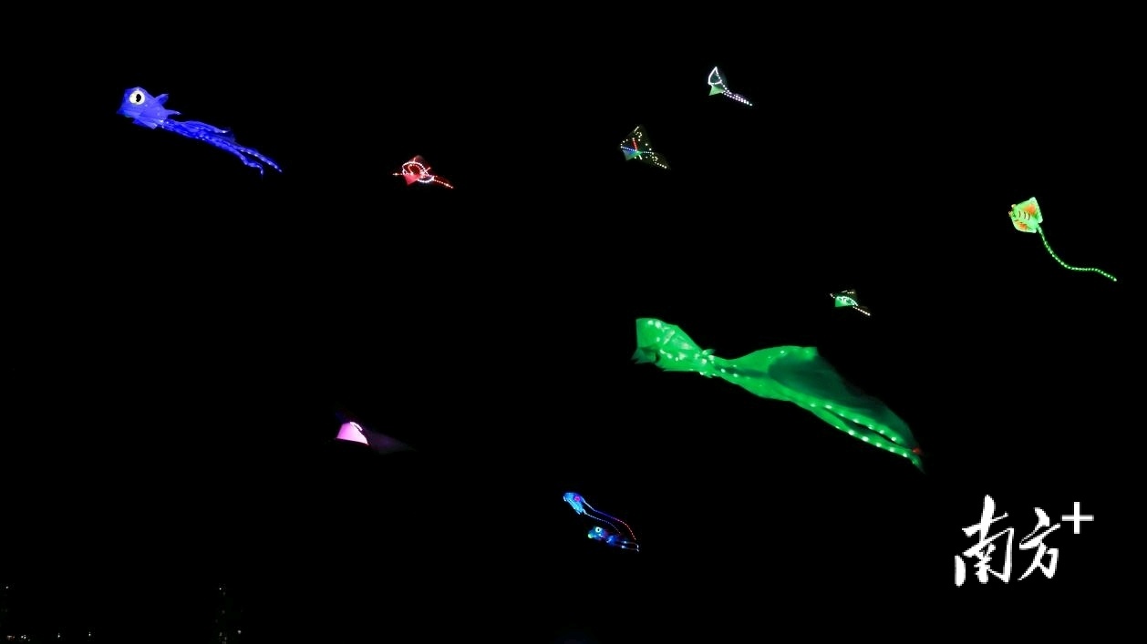 在8月15日晚上,螺洲海滨公园内举行的夜光风筝嘉年华将活动推向了高潮。夜空中,金鱼、鳐鱼、三叶草等色彩斑斓的夜光风筝与海浪、星光交相辉映,营造出梦幻般的视觉效果。游客们纷纷举起手机,记录下这难忘的一刻,纷纷表示感受到了“中国风筝之乡”的独特魅力与海滨城市的无限风情。