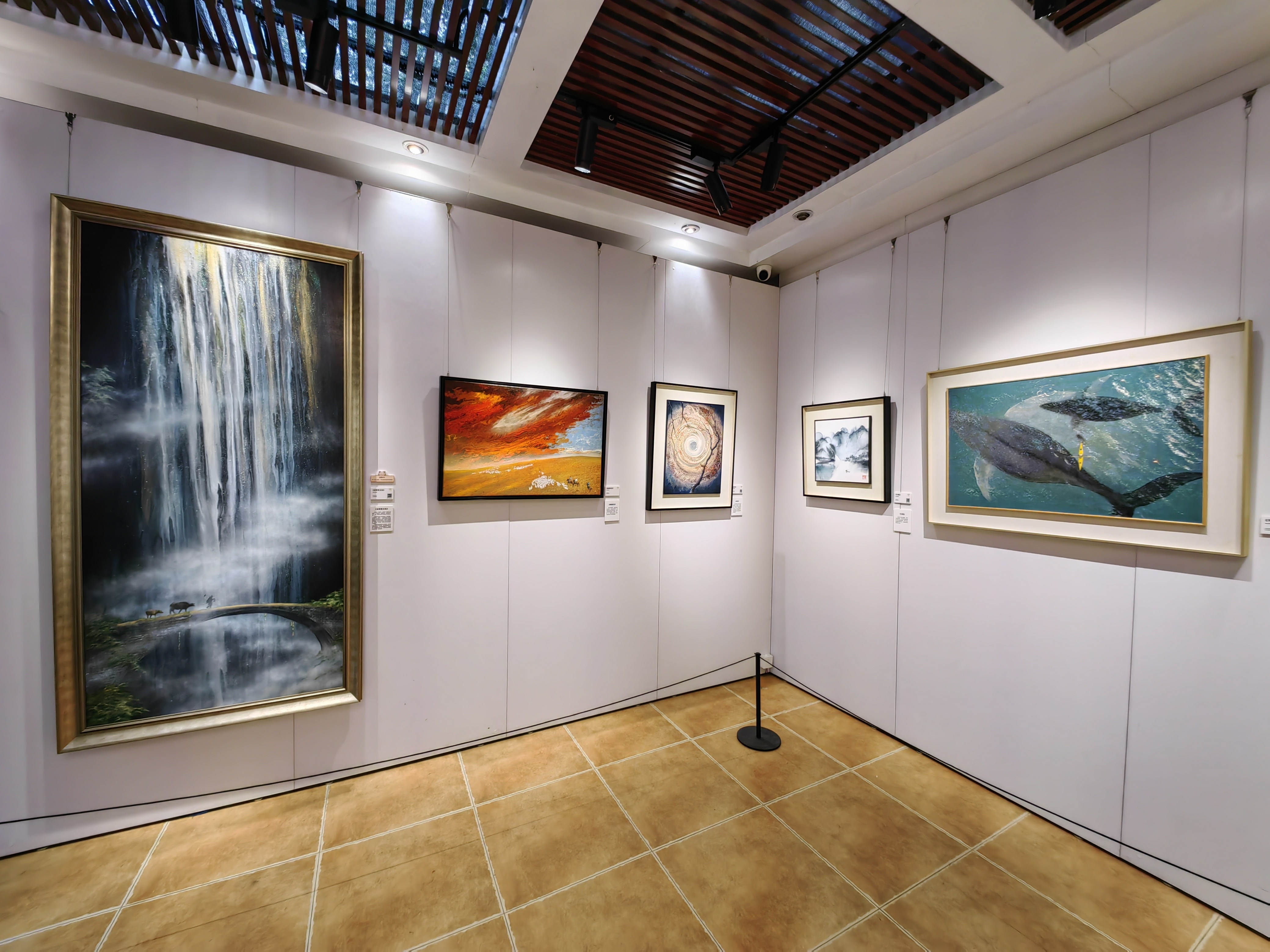 该展览展出由陈迪生老师和林瑞红老师共同创作的复合丙烯流彩艺术作品,是液态颜料在重力与化学作用下的即兴诗篇,是色彩挣脱笔触束缚后的自由落体。