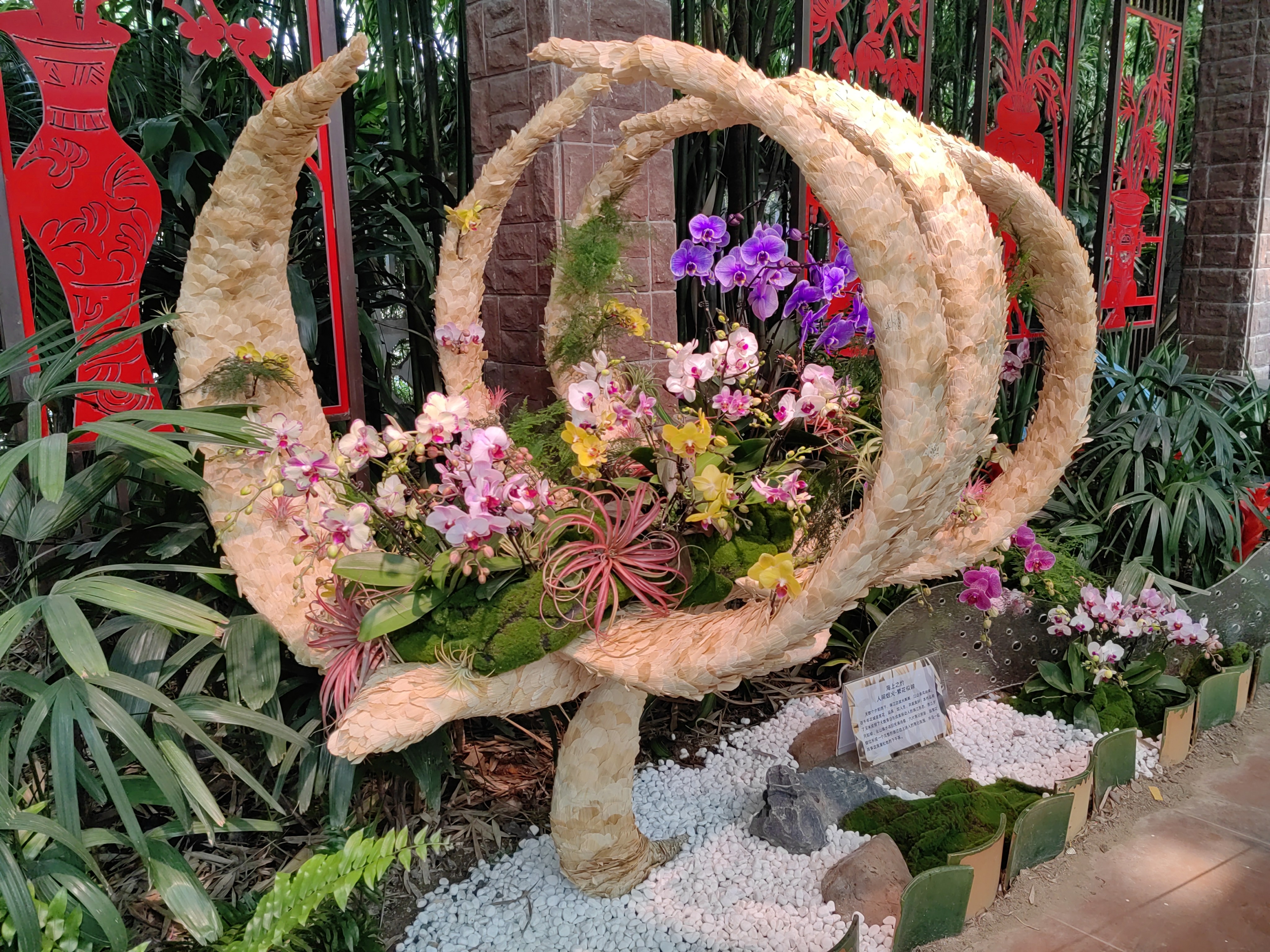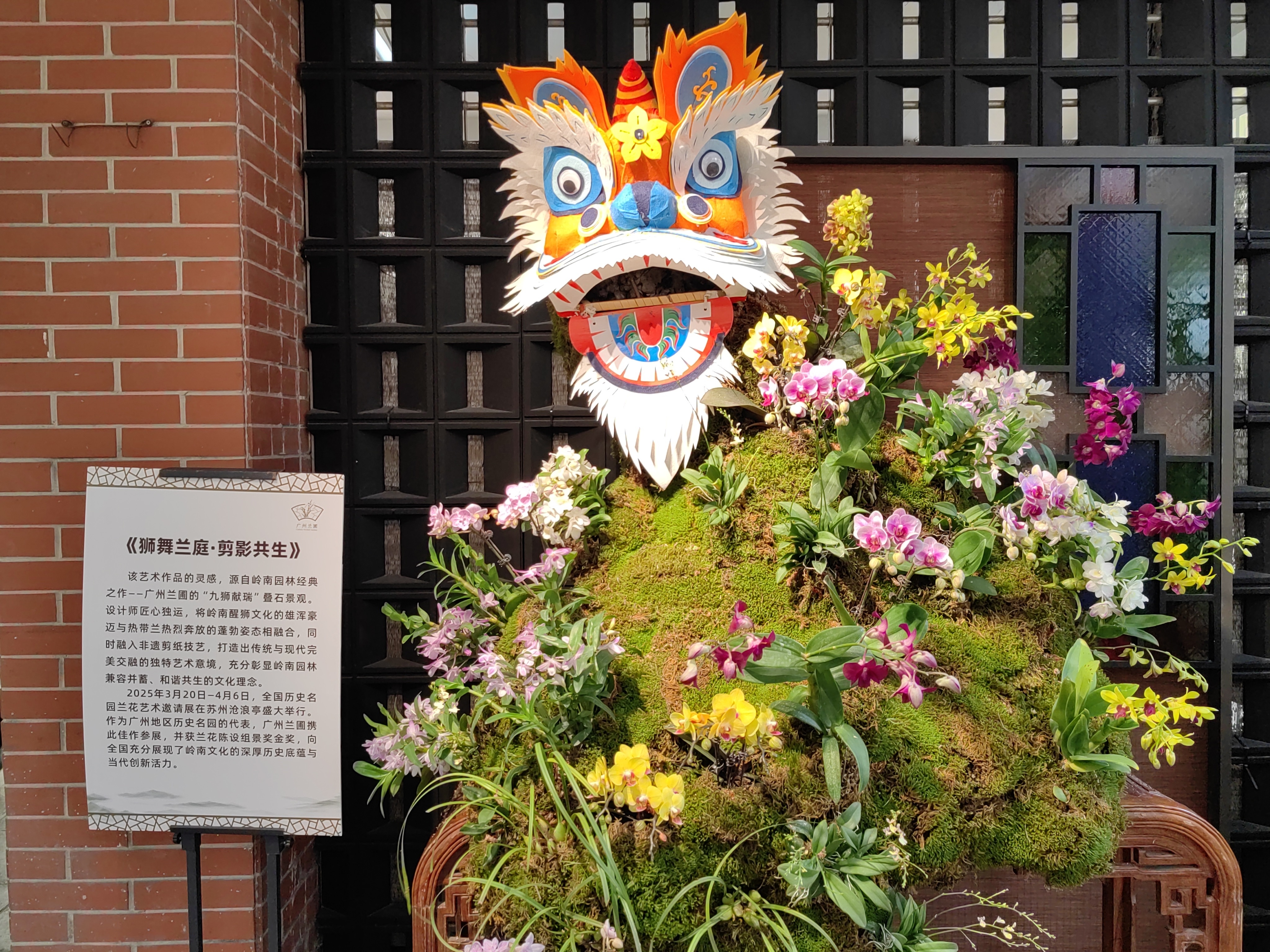 “五一”期间,代表广州兰圃荣获“名园名蕙耀沧浪”2025中国历史名园兰花艺术邀请展兰花陈设组景奖金奖的《狮舞兰庭·剪影共生》载誉而回,让游客一睹金奖风采。