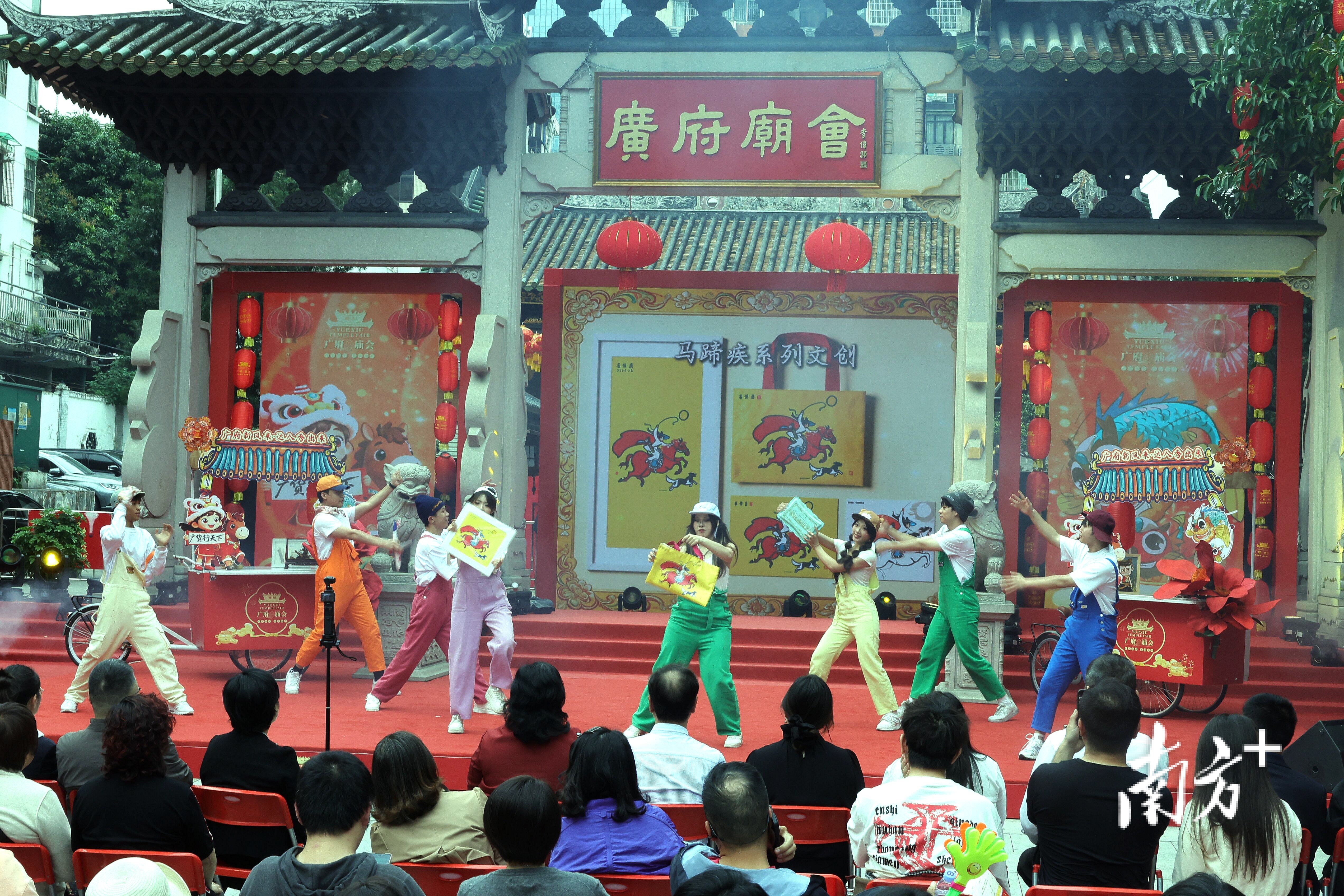 “童声粤韵”专场通过多首童谣篇章,融合广府生活、古诗新唱与家国情怀,现场发布了越秀区原创粤语童谣成果集。主会场连续上演多场粤剧折子戏,《扈家庄》《游园惊梦》等知名选段轮番登场,名家与新秀同台,尽显岭南戏曲风采。青年喜剧周则为庙会注入青春活力,粤语喜剧《放马过来》以“真人假扮AI”为主线笑谈职场百态;互动式小丑运动会让观众成为表演主角,开心麻花也在剧场献上多场演出。