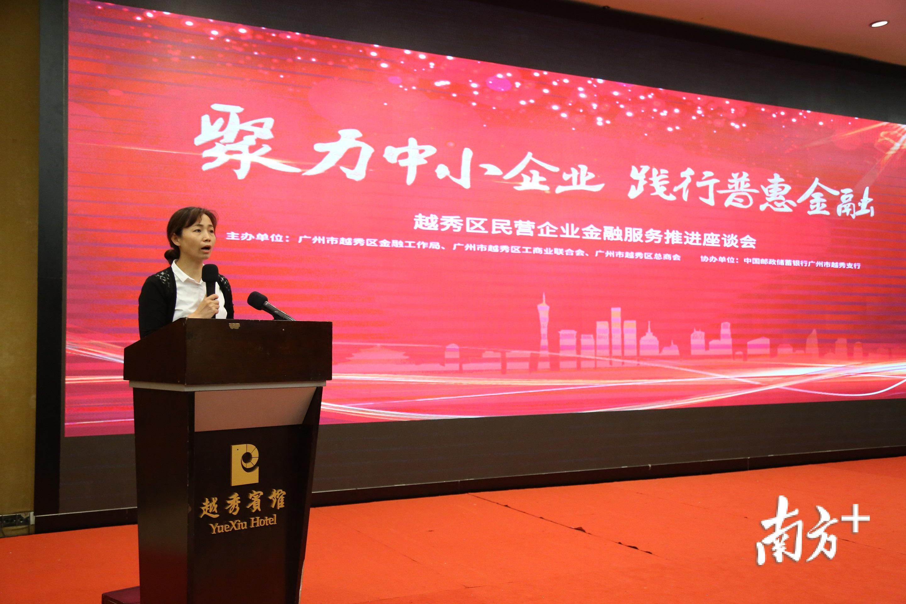 中国邮政储蓄银行广州市分行负责人在会上介绍了邮储银行的发展情况,并结合区内民营企业经营发展情况,有针对性地介绍了信用贷款、抵押贷款、周转易贷、ETC服务等为民营企业量身定做的普惠金融服务项目。