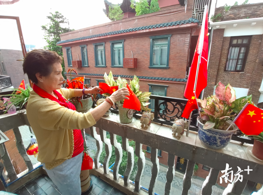 六榕街旧南海县社区党委书记叶露雅告诉南方日报记者:“我们有一个社区微信群,最近大伙聊的都是怎么样去共同庆祝新中国成立70周年。我们目前给家家户户都派发了国旗,挂在门前和阳台上。”
