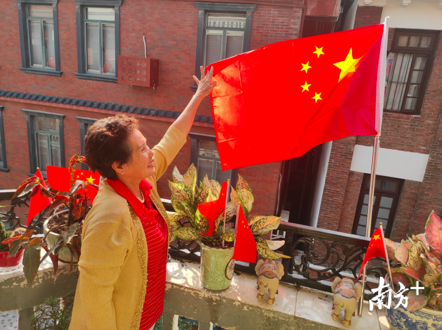 与共和国同龄的她用国旗装点阳台传递欢乐