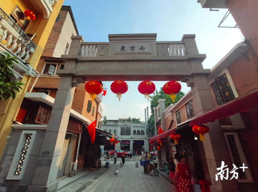 经过微改造,以“红楼”闻名的惠吉西路焕然一新。“富强、民主、文明、和谐……”写满字的红灯笼挂在树上,家家户户门前随风飘扬着醒目的五星红旗,处处可见“中国红”的惠吉西路游人如织。