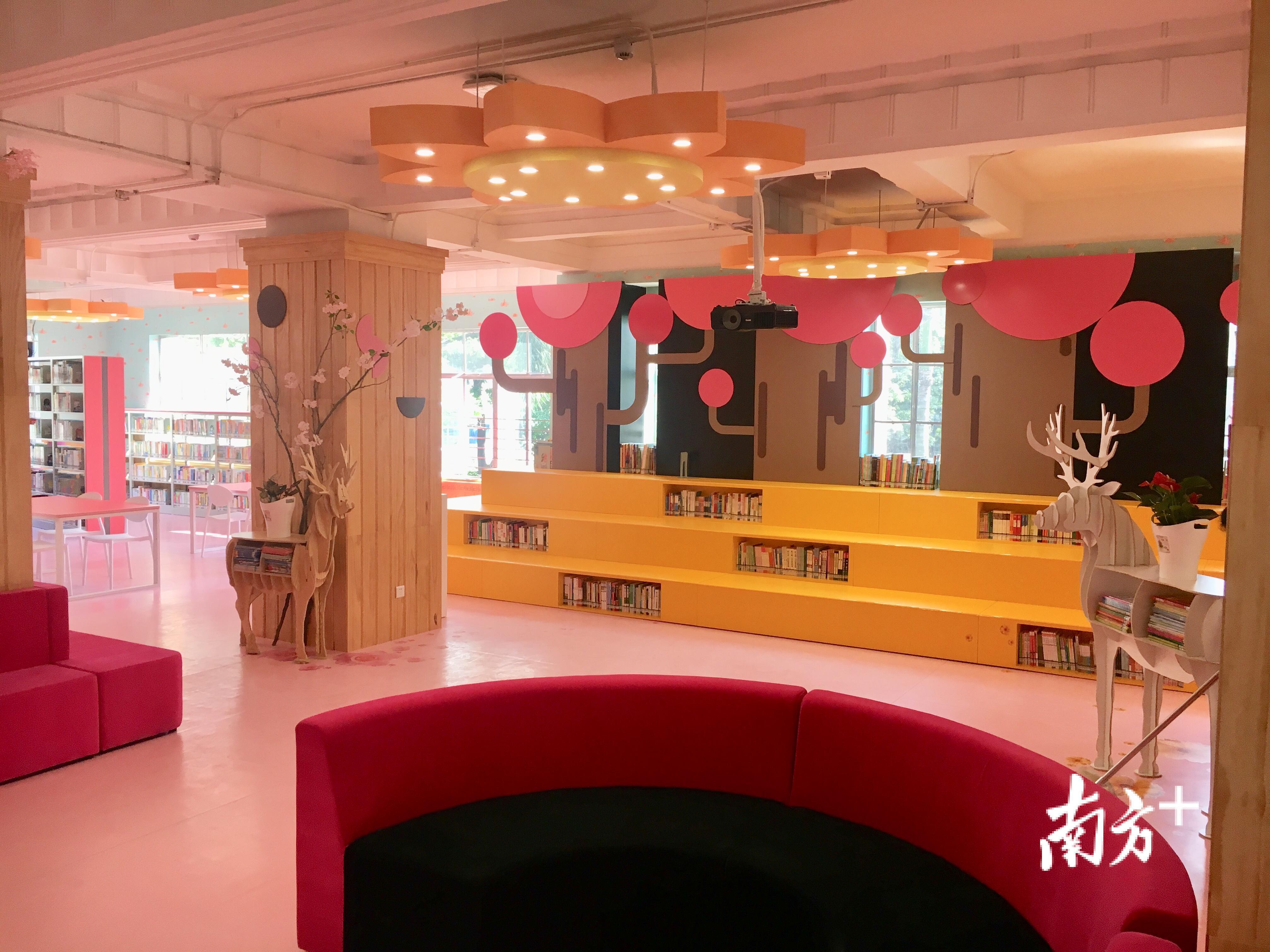 越少图采用“珠水花香”的设计理念,让宝宝们尽情在“花花世界”里看书发呆,在“清清珠水”畔畅读经典。既贴合其地理位置,又是祝福这座城市“天更蓝,水更清,花更香”,让少年儿童从小就在心中种下环境保护的种子,可谓寓意深远,匠心独具。