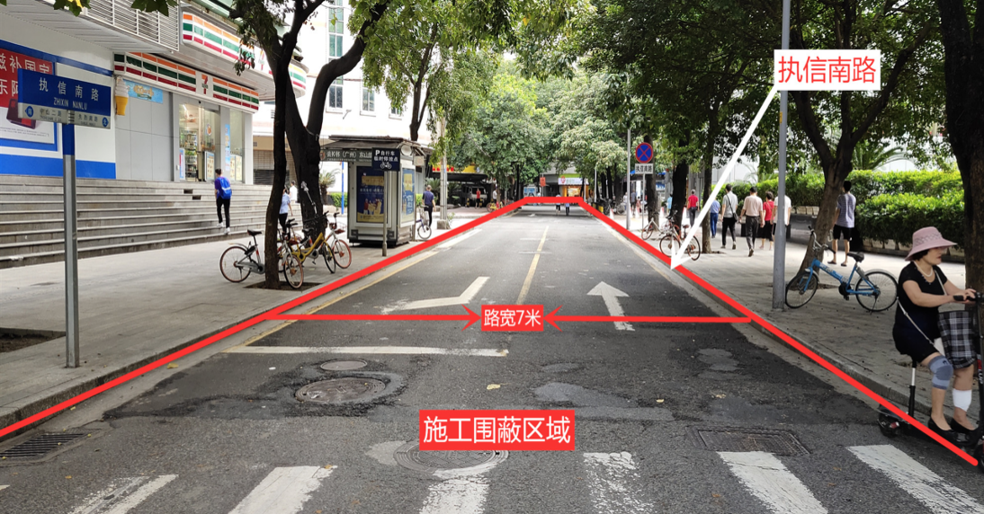 因百子涌片区周边排水管网改造工程施工需要,今天10时至2020年1月20日22时,广州市越秀区市政管理部门分段全封闭执信南路进行排水管网改造施工。